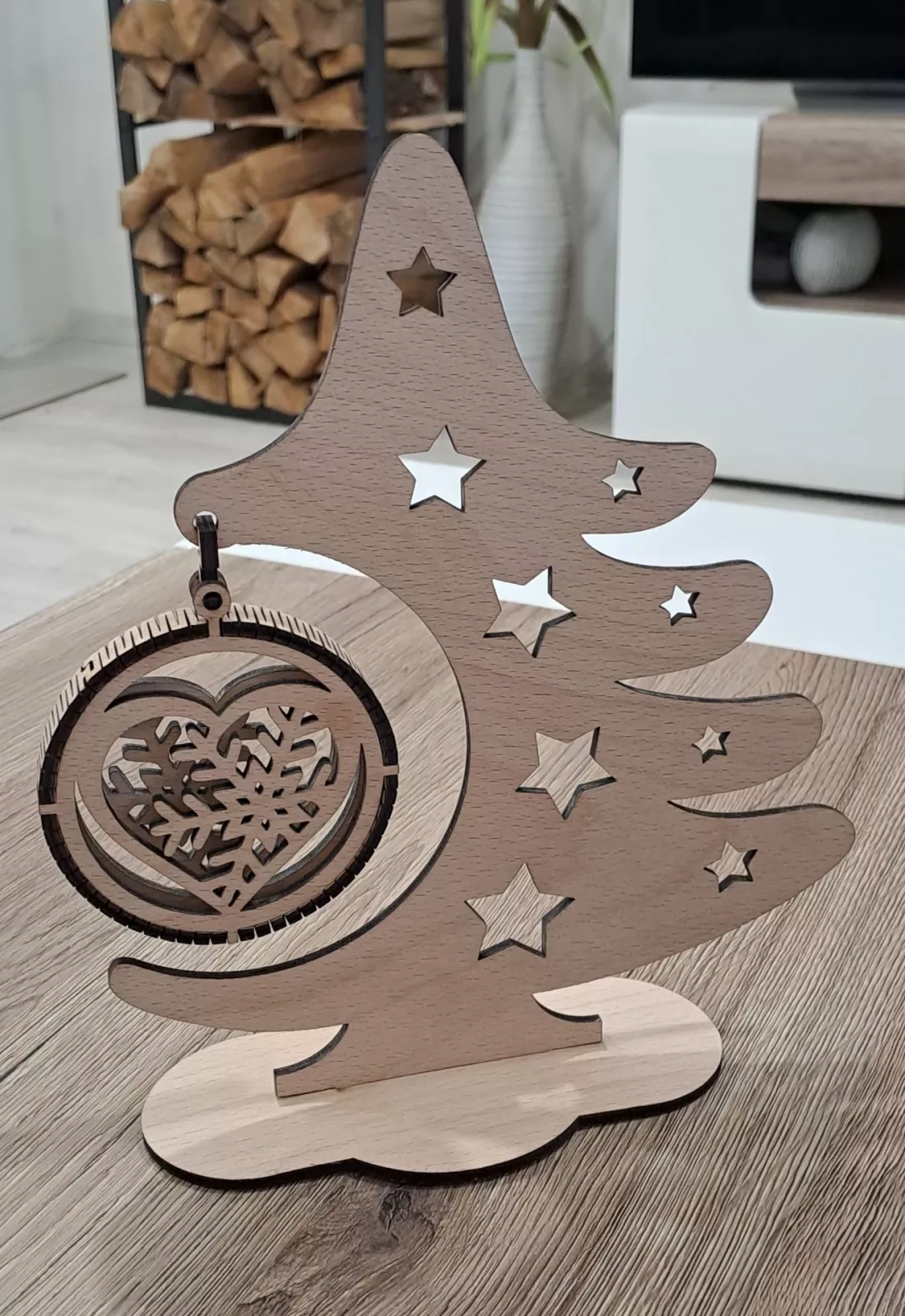 Tento vánoční stromek se zavěšenou ozdobou je vyrobený z bukové překližky o síle 4mm a má minimalistický design, který vynikne v jakémkoli interiéru. Závěsná ozdoba přidává stromku jemný pohyblivý prvek, který oživí vaši vánoční dekoraci. Za stromek si můžete postavit svíčku a tak docílit perfektní vánoční atmosféry.