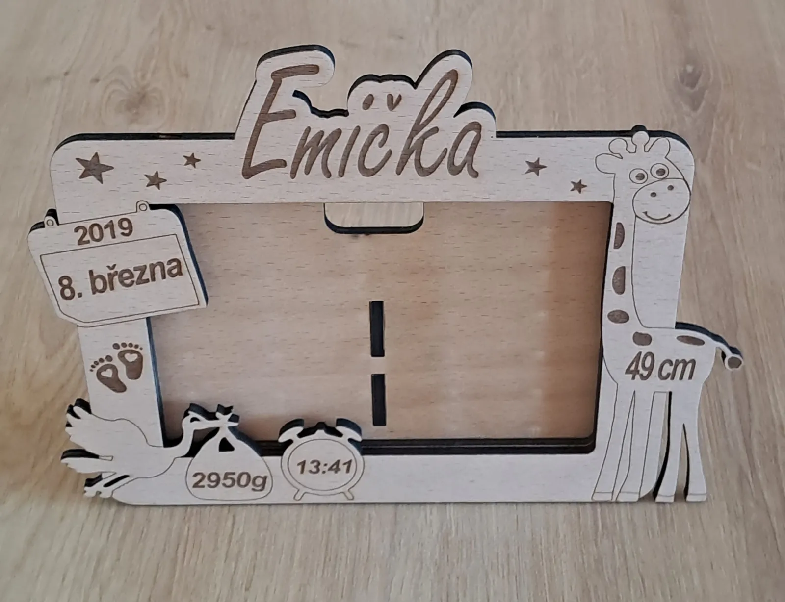 Uchovejte si jedinečné okamžiky spojené s narozením vašeho miminka pomocí tohoto krásného dřevěného fotorámečku. Rámeček je navržen tak, aby zdůraznil vzácné vzpomínky na novorozeně a stal se stylovým doplňkem Vašeho interiéru.