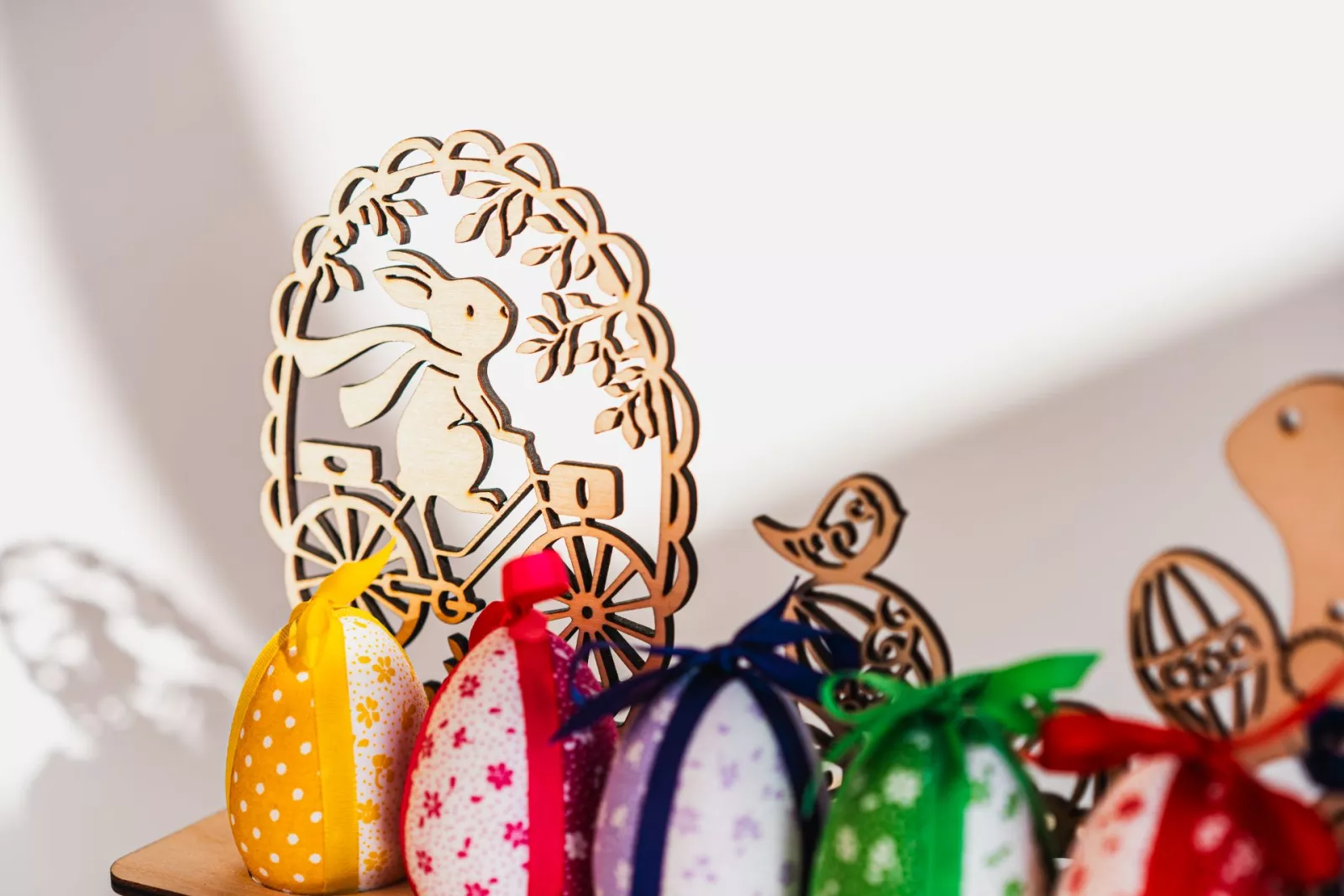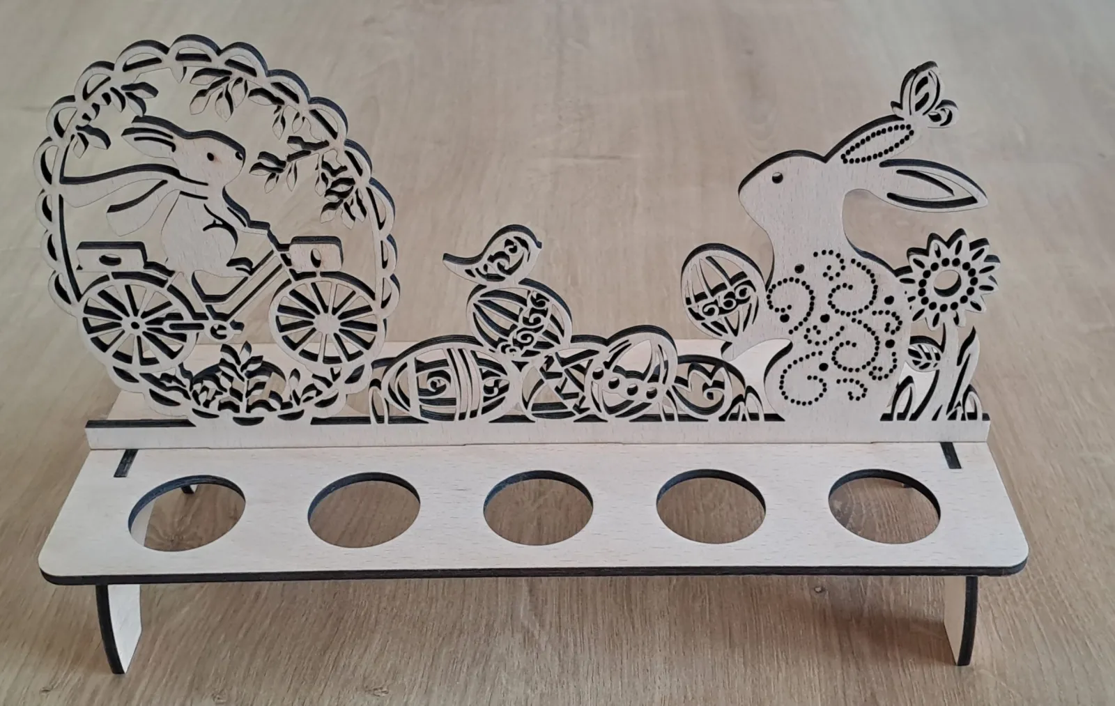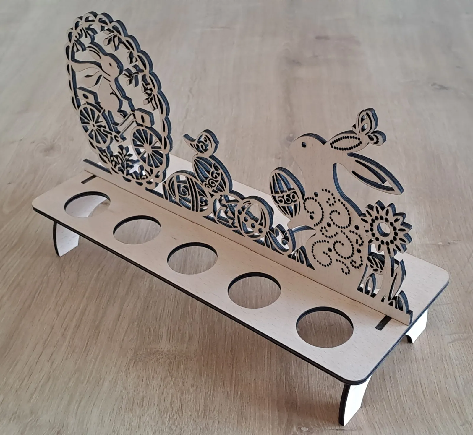 Dřevěný velikonoční stojan na vajíčka je vyroben z bukové překližky o síle 4 mm. Produkt je určen k dekorativním účelům, může být ozdobou u velikonočních košíčků nebo jen doplňkem Vaší výzdoby.